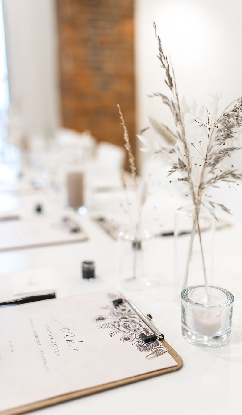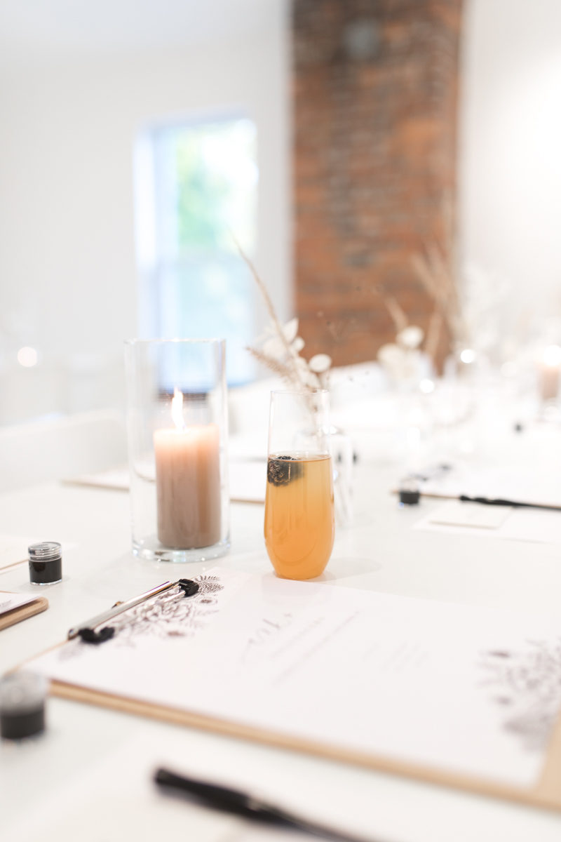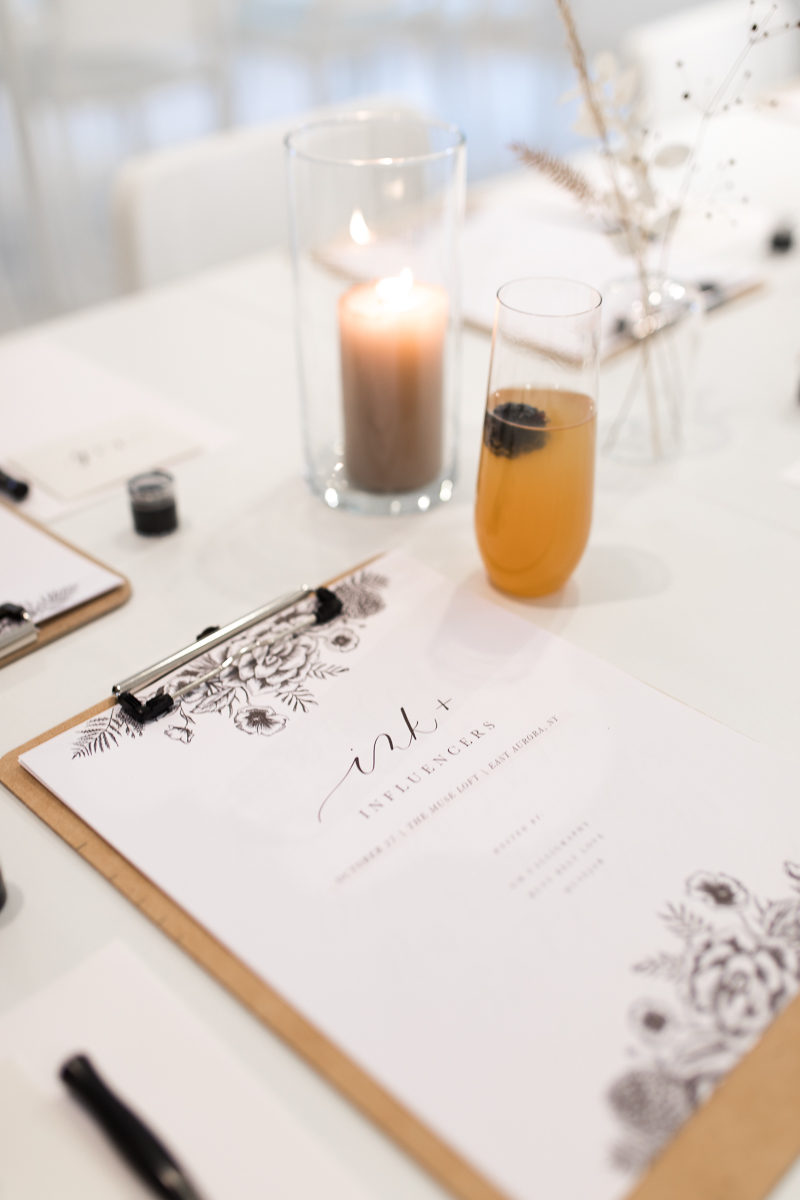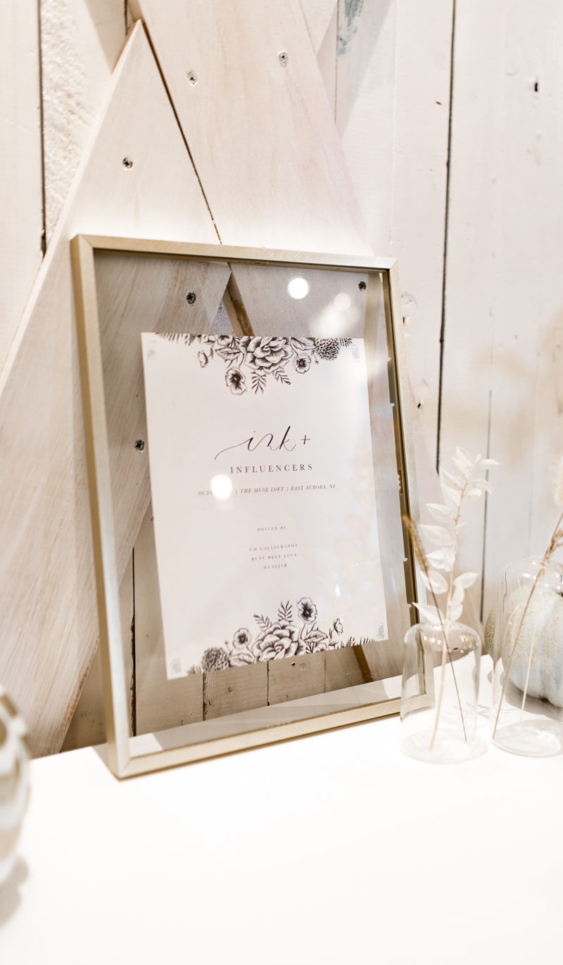 Gina is the boss babe behind Gina Marie Calligraphy and works wonders as a modern calligraphy. She designed our wedding invitations, calligraphed all of our envelopes, and then lettered all of the signage at our wedding (which currently have new purpose as wall decor in our house). I’ve been working on modern calligraphy for the last 5 years, but with pens only and not true ink and nibs. I took a workshop with Gina earlier this year and she literally had me ditching my brush pens for the real thing. On Sunday, I ventured out to the new Loft at Musejar in East Aurora for an incredible joint workshop featuring Gina’s calligraphy and Alyson’s (owner of Rust Belt Love) artistic eye. The result was three hours of the best “me time” I’ve had this year.